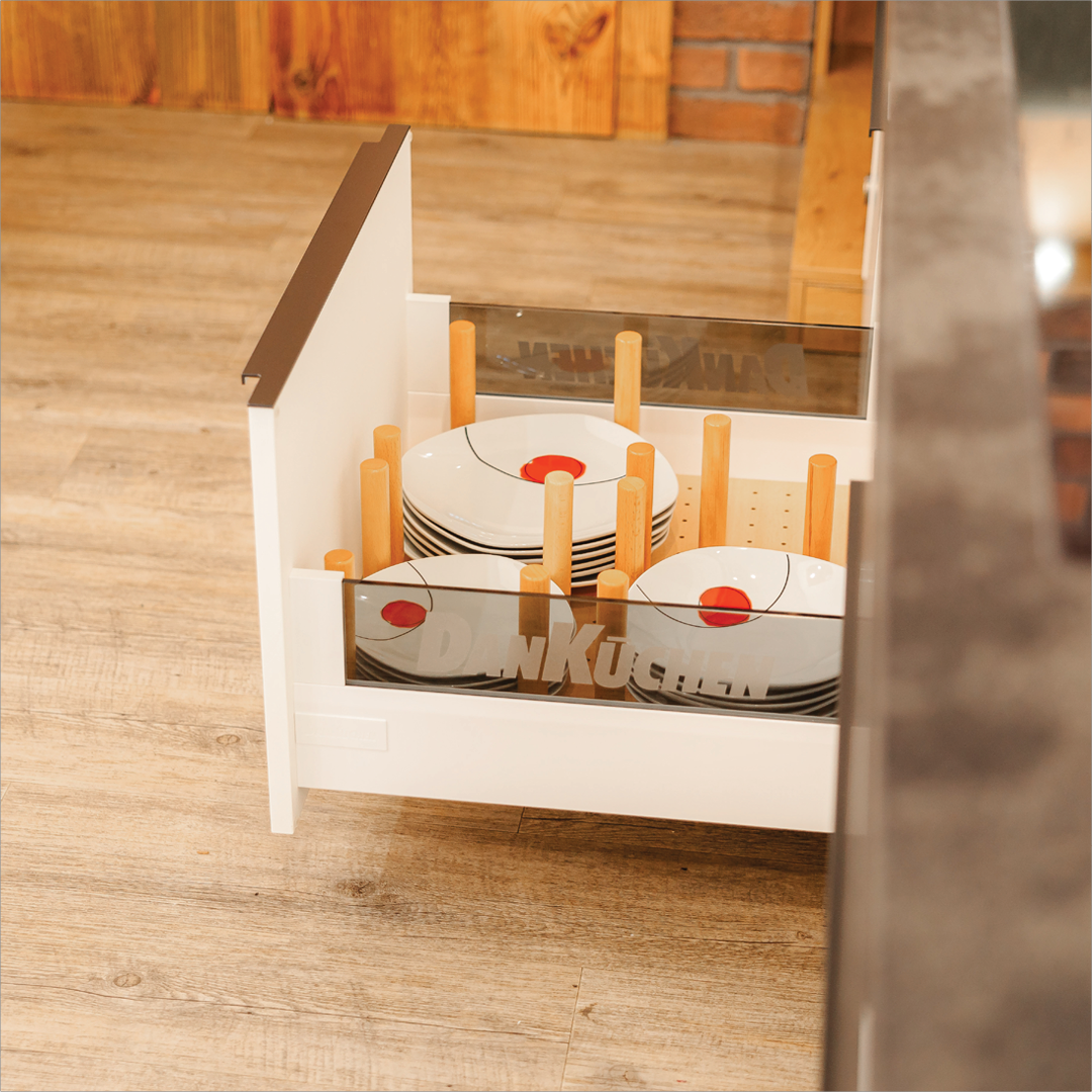 Vaša DAN-kuhinja izkoristi vsak skrit prostor! Kuhinjski podnožni predal se lahko uporablja tudi kot prostor za shranjevanje – tako pridobite 15 % več prostora v kuhinji.