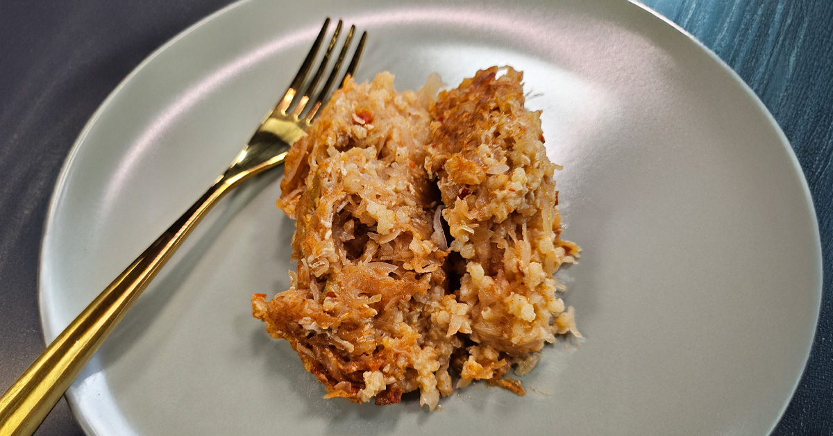 Preprost in zdrav recept za pečeno kislo zelje s proseno kašo in dimljenim tofujem – popolna jesenska kombinacija.